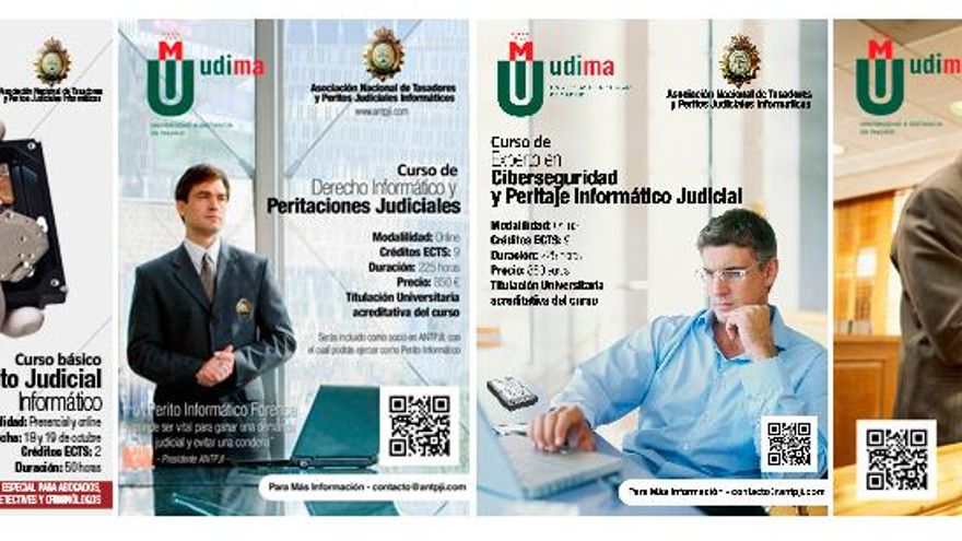 Es una clara referencia a lo que, irónicamente, Martínez denomina en su entrada “eventos (o cursos)”. Se parecen más a lo primero, pero dicen tener la validez de los segundos. Es sencillo comprobarlo echando un vistazo al apartado “formación” de la web de ANTPJI, donde se ofrecen cursos de diversa duración y contenido en colaboración con UDIMA, la Universidad a Distancia de Madrid. La gran mayoría de ellos prometen una “titulación universitaria”, palabras textuales, al finalizar el curso. Y, sin embargo, como nos recuerda Narbona, no existe ninguna titulación en el ámbito de la informática forense reconocida por el Ministerio de Educación.