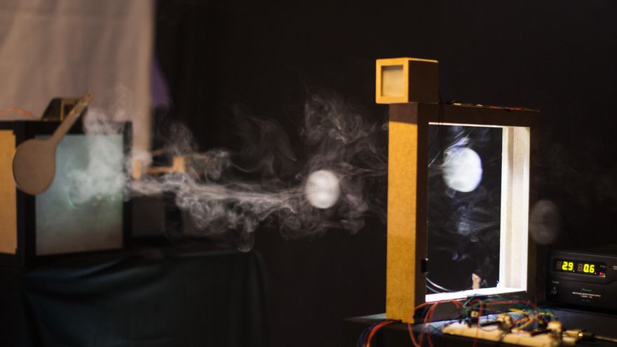 Cualquier participante en el curioso experimento puede escribir un texto en el ordenador transmisor, y este lo transformará en unos y ceros. Ahí entra en juego la tecnología que estos dos estudiantes han desarrollado, y que han apodado como 'caja de humo', en la que han utilizado un nebulizador y una placa de hardware libre Arduino.