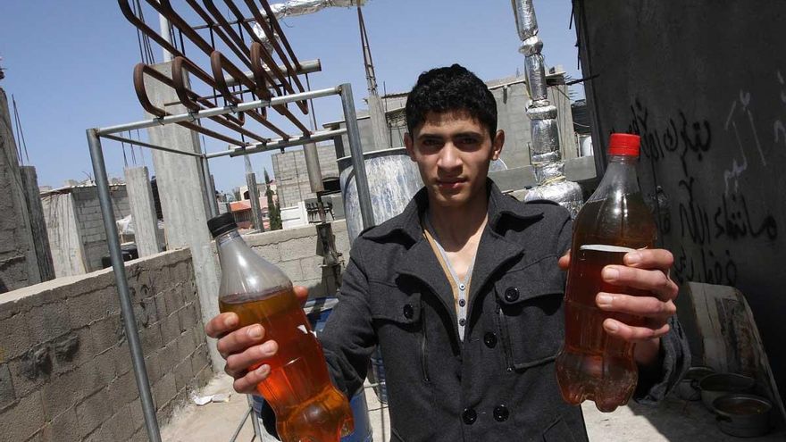 De la necesidad, virtud: un ciudadano de Gaza convierte el plástico en gasolina