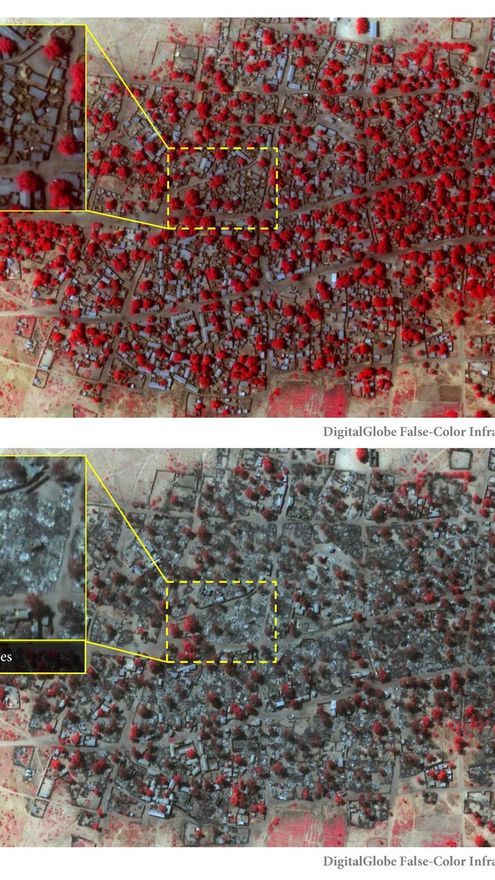 “Los medios de comunicación apenas publicaron información porque era escasa”, dice. La ONG, sin embargo, fue capaz de despejar las dudas gracias a dos imágenes satélite de los momentos inmediatamente anterior y posterior al ataque. Con ellas pudieron comprobar que cerca de 3.700 estructuras habían sido dañadas o destruidas. Su posterior análisis “arrojó luz sobre un crimen que, de otra forma, habría pasado inadvertido”.