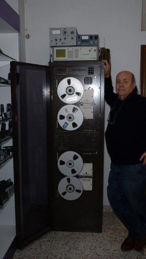 También preserva dos gigantescas grabadoras, del tamaño de un armario, que registraban el sonido de las llamadas en cintas magnéticas. Él mismo las llevó hace años al parque de bomberos de Alicante. “Estas grabadoras las instalé yo en la Diputación de Alicante cuando les monté el 085, que es el teléfono de los bomberos”, asegura Francisco. Cuando iban a ser retiradas, el propietario de Teleydata pidió quedarse con estos aparatos del tamaño de un armario para que formaran parte de su colección. Eso sí, también preserva cacharros para registrar el sonido más pequeños en la que fuera la sede de su empresa, como los anticuados contestadores de casetes.