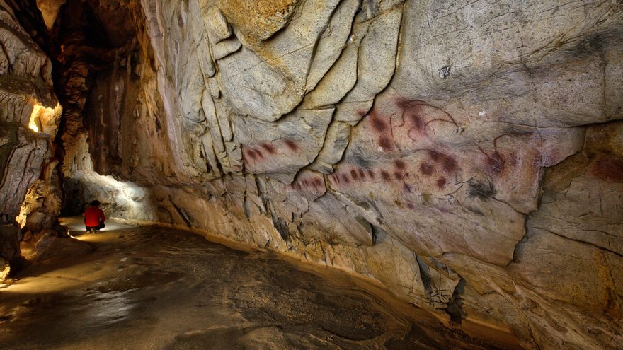 En otra de las cuevas de El Castillo hay una pequeña y estrecha galería a la que solo puedes acceder entrando de costado. Cuando la persona llega allí, tiene que girar a la izquierda y meterse en una pequeña sala. No hay más opciones. De frente encuentras un ciervo “que impresiona porque es lo único que ves, y te llama la atención”. Cuando vuelves al exterior, empiezas a ver más figuras. “Todo está puesto ahí a propósito”, sentencia Garrido.