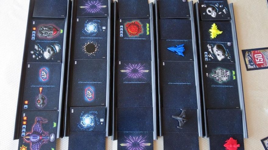 Efectivamente, son juegos de mesa. Y no tienen mala pinta, sobre todo si llevas disfrutando de los videojuegos desde los gloriosos años 80. Uno de ellos es The Battle at Kemble’s Cascade, de los hermanos suecos Anders y Olle Tyrland y todo un homenaje a las viejas recreativas y los ‘shoot’em up’. El tablero intenta imitar esas pantallas rotatorias haciendo alternar los cinco soportes de plástico con los que está formado. El objetivo, como en aquellas máquinas, es disparar a las naves que hay a tu alrededor. Esta creación también tiene un gran jefe final al que hay que derrotar tras superar todas las fases previas.