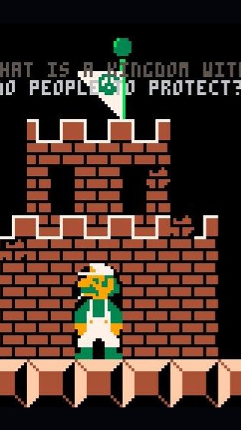 Por ello, además de interrogarse por su hermano, Luigi se pregunta cuándo fue la última vez que comió, de dónde salen tantos castillos o “¿qué es un reino sin gente para proteger?”. Porque el fontanero de camisa y gorra verdes ni siquiera puede entrar al castillo para terminar su nivel o buscar a Peach: