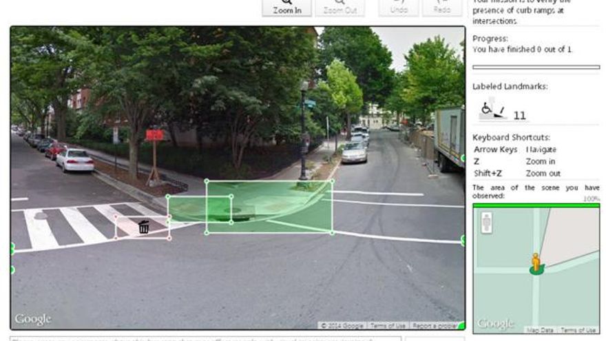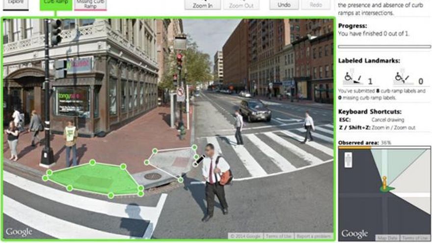 Posteriormente, Tohme evalúa la calidad de ese trabajo de detección: si cree que la identificación por visión artificial ha sido un éxito, envía los datos a trabajadores humanos (han utilizado el servicio de 'crowdsourcing' Amazon Mechanical Turk), que simplemente tienen que verificarlos. En caso contrario, el sistema desecha ese trabajo y se lo manda directamente a los 'turkers' para que detecten y etiqueten la presencia o ausencia de rampas en las aceras.