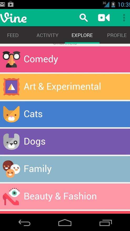 Sin embargo, los vídeos en su mayoría son gags cómicos. No es casualidad que los canales que aparecen en la pestaña para “explorar” vídeos sean comedia, en primer lugar, y luego arte y experimentación, gatos, perros y familia, entre otros localizados en posiciones inferiores.