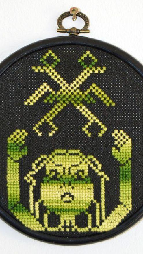 Meyers compara el Teletexto con una manualidad, y lo asemeja a un bordado. “El punto de cruz se forma a través de equis, igual que el Teletexto”. Es por eso que combina ambas aficiones y confiesa que, a veces, después de hacer alguna página de Teletexto, la ha recreado en punto de cruz. En cierta manera, comenta, el uso de los caracteres funciona de la misma forma que la rejilla-guía que se utiliza al tejer. “La manera de pensarlo y abstraerlo está totalmente relacionada”.