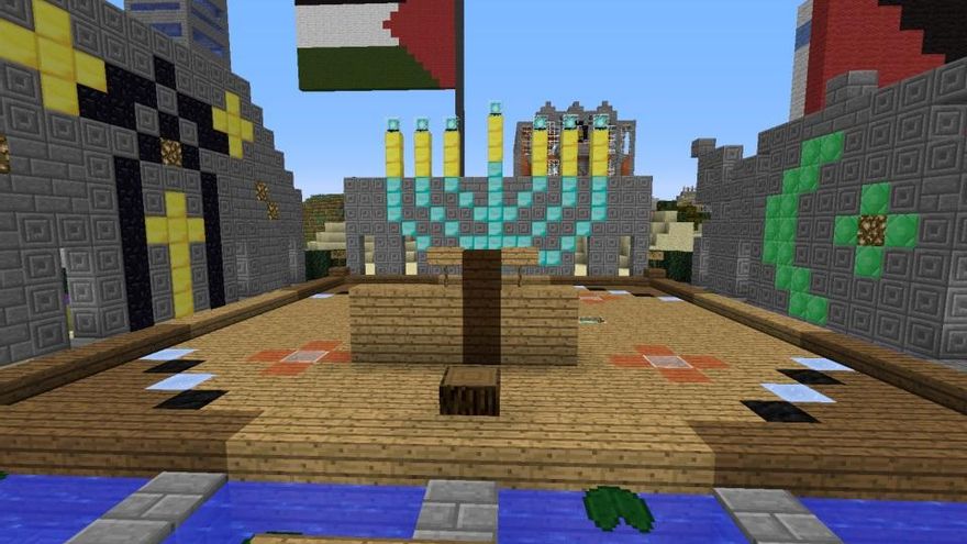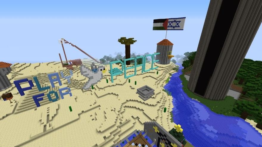 También han usado Minecraft para organizar una especie de Mundial de fútbol. Los niños construyeron un gran campo de juego con sus porterías, su césped, sus jugadores, sus asientos y sus banderas. Entre los equipos participantes, más allá de los habituales, también estaban el israelí y el palestino.