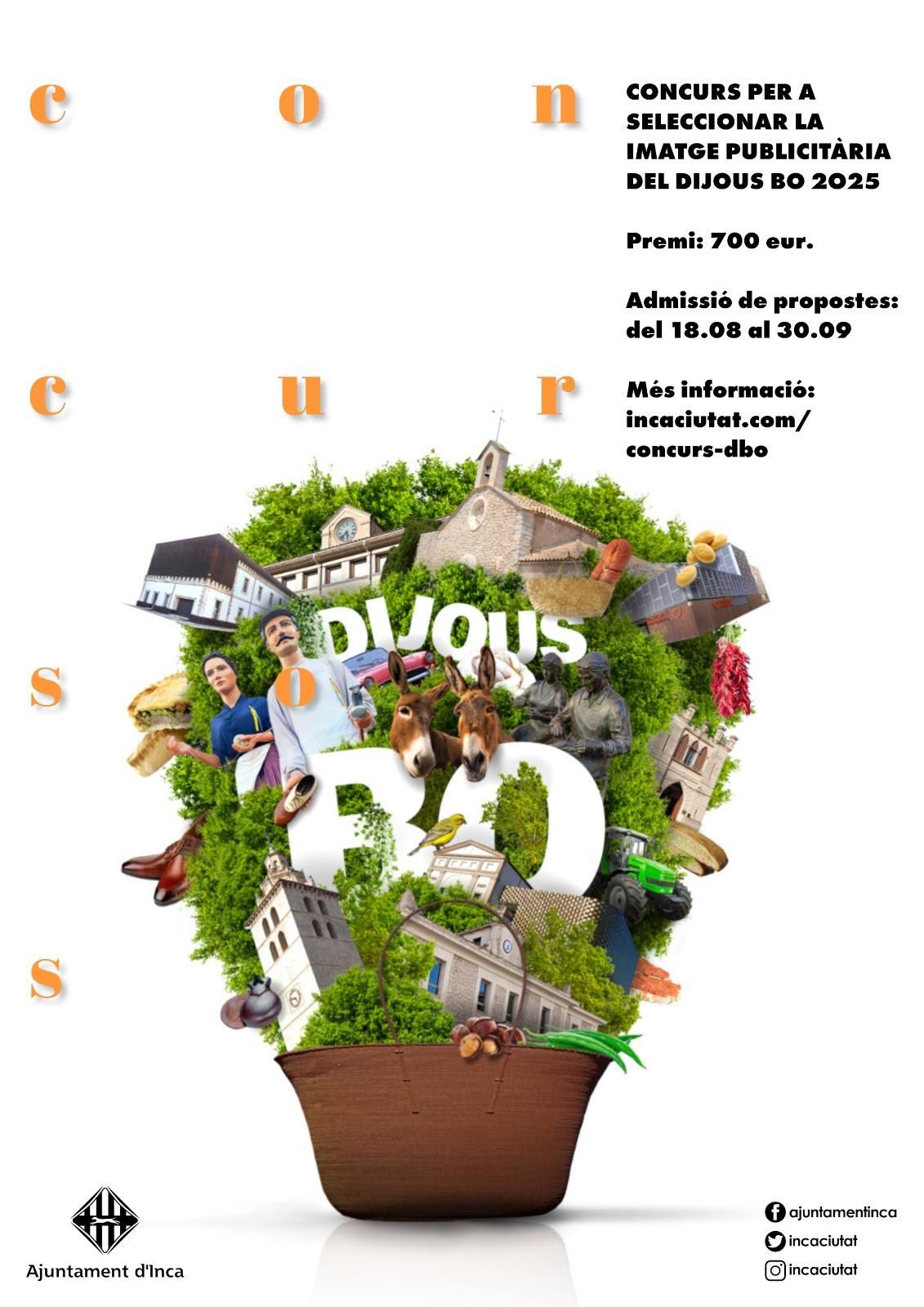 L’Ajuntament d’Inca ha obert ja la convocatòria del concurs per seleccionar la imatge publicitària del Dijous Bo 2025, la fira de les fires, que enguany se celebrarà el 13 de novembre.
