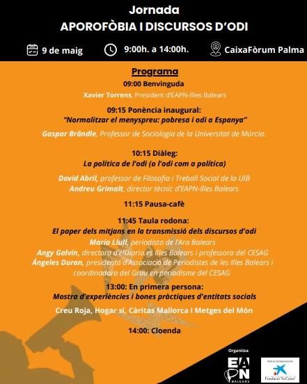 La trobada reunirà a especialistes, acadèmics i entitats socials que compartiran mirades, experiències i propostes per fer front a l'aporofòbia i fomentar una cultura de respecte i justícia social. La ponència inaugural, titulada 'Normalitzar el menyspreu: pobresa i odi a Espanya', serà impartida per Gaspar Brändle, doctor en sociologia per la Universitat Complutense i professor titular del departament de la Universitat de Múrcia.