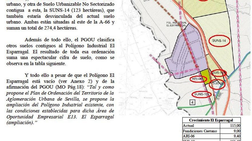 Aquí tenéis el documento del que he sacado el gráfico de arriba. Las alegaciones de la Asociación para la Defensa del Territorio del Aljarafe al PGOU de Guillena del año 2011.