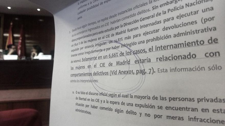 Presentación del estudio académico Mujeres en el CIE. Bueno, de la parte del estudio que pudo realizarse puesto que con el cambio de Gobierno, el Ministerio del Interior cortó el acceso a las investigadoras sin dar ninguna explicación.