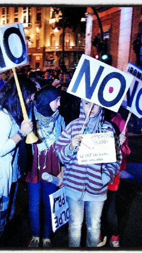 Otra cosilla. Te acuerdas de la señora de la que te hablé en la última carta, Pilar, ¿a la que sacaste del sofá para llevarla a las plazas? Pues con esta movida creo que habéis hecho nuevas adquisiciones. El día 26, el día después de toda la violencia, la plaza estaba llena de jóvenes estudiantes. Muchos de ellos me daba la impresión que era la primera vez que pisaban una manifestación. Y no era un día fácil para venir, coincidirás conmigo. Mira estas niñas qué valientes. A lo mejor han venido para quedarse… ¡Gracias Cristi!