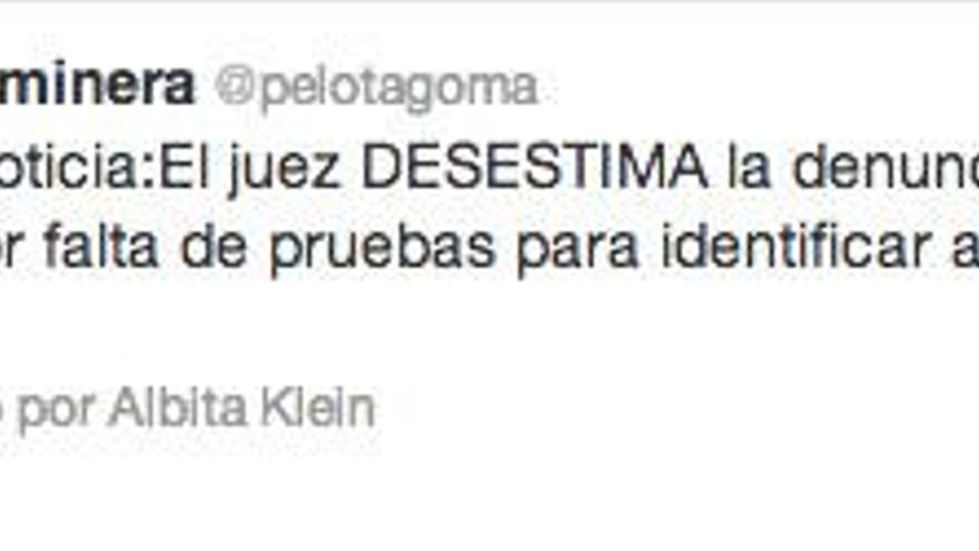 Por cierto. Esta señora escribe que ni tú ni nadie de tu Delegación se ha interesado por ella después de estar medio muerta más de un mes en un hospital a causa de una agresión de la policía bajo tu responsabilidad... veo que habéis usado la conocida “técnica Botella” para vuestra vergüenza y nuestra NO-sorpresa. Muy edificante todo.