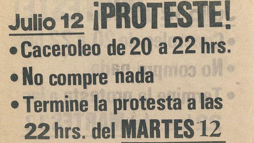 Apenas un día antes del inicio de la huelga y, repentinamente, los portavoces y líderes del movimiento obrero deciden cambiar de estrategia. En vez de insistir en el paro de las minas como única vía de protesta, convocan ahora a la primera Jornada de Protesta Nacional, un día repleto de muchas acciones descentralizadas a lo largo del todo el país. Dicho llamamiento animaba a la gente a, por ejemplo, conducir sus automóviles a velocidad muy lenta por las autopistas y principales calles chilenas con la intención de provocar un multitudinario atasco en todo el país; o a encender y apagar una y otra vez las luces de su hogar; o a golpear sus cacerolas y sartenes ininterrumpidamente en cuanto cayese la noche. Y así fue como nació el cacerolazo, un modo de protesta todavía vigente en la actualidad.