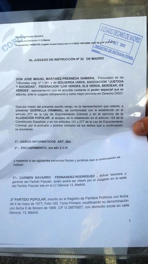 Pues ayer se dió otro paso en este sentido. Fue la primera vez en la historia que se presentaba una querella contra un partido político. En esta nueva querella, que forma parte de la denominada #QuerellaBárcenas (presentada por cinco organizaciones) se denuncia la ya famosa destrucción de ordenadores con datos de Luis Bárcenas, y, además de la actual gerente del PP, se pide la imputación (que en este caso no sé si se dice así) del propio partido. En este vídeo, dos abogados de la acusación nos explican los detalles: