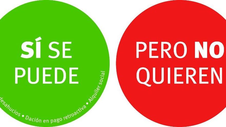 Mario: La idea fue explicar el conflicto con un simple golpe visual. Por un lado, el “sí se puede” de la PAH (el millón de firmas, el apoyo social, etc.). Por otro, el “pero no quieren” de la élite política completamente sorda a la sociedad. Verde y rojo: adelante y stop. Muchos carteles verdes y uno solo rojo: 99% y 1%. Los carteles y las pegatinas están diseñados, no tanto para el señalamiento de tal o cual político, como sobre todo para recoger y servir a la expresión del apoyo social a la PAH.