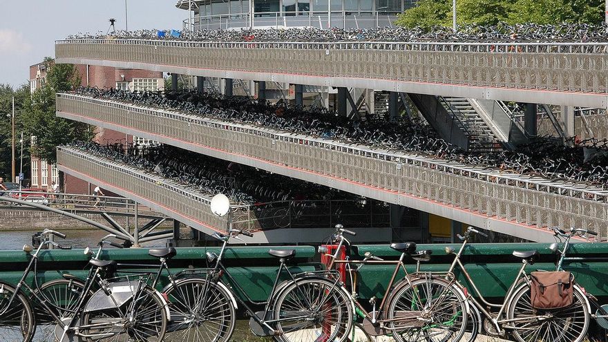Ámsterdam: que yo recuerde en esta ciudad no hay servicio público de bicis aunque la ciudad está plagada de bicicletas siendo casi el medio de transporte principal en el centro de la ciudad. De allí me llamó la atención la existencia de unos grandes parquins de bicicletas en las inmediaciones de las estaciones de tren. Vienes en tren, usas tu bici en la ciudad, acabas el día y la dejas allí aparcada.