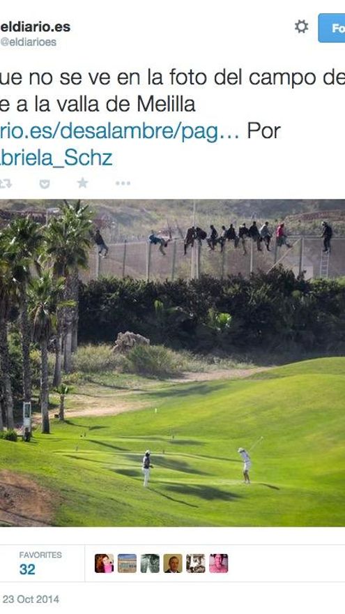 La situación es ya conocida. O por lo menos parte de ella, la de los subsaharianos intentando entrar en la Ciudad autónoma de Melilla. Lo del campo de golf a 10 metros de la valla (el que está construido con fondos europeos y que el campo “pertenece” al dueño del gran medio de comunicación local, eso, no era tan conocido, claro) y el ver a nuestros conciudadanos, -muy concentrados- intentando fuertemente no dejar que su swing sea perturbado por la presencia de esas criaturas subidas en la valla (vigiladas de cerca por un policía), pues evidentemente ha sido la comidilla de medio mundo.