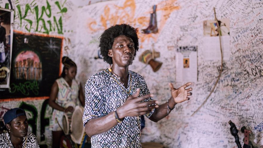 Afro Netto tiene 26 años, un grupo de música llamado Kombilesa-mi y hace dos años se presentó a las elecciones municipales “para dar voz a su pueblo”. Y es exactamente eso lo que intenta hacer con la música y con un centro social que trabaja con unos 50 niños. Con apenas tres años, los niños tocan el tambor y siguen el ritmo con sus pies diminutos.