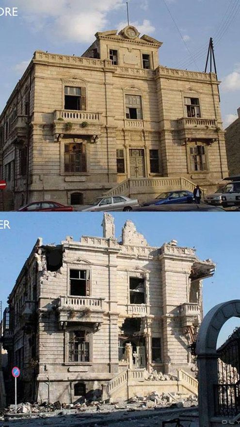 Un restaurante de Alepo ha recogido algunas fotografías que muestran el antes y después de varios enclaves tras sufrir años de combates. Esta ciudad siria era la más poblada del país y era un importante destino turístico antes del estallido del conflicto. No en vano, la ciudad vieja de Alepo es uno de los seis lugares destacados como Patrimonio de la Humanidad en Siria y actualmente declarada en peligro. “Estas 124 imágenes muestran cómo era nuestra amada ciudad y cómo es ahora tras el sabotaje, destrucción, saqueo y quema de monumentos, enclaves históricos, mezquitas, iglesias y antiguos mercados históricos que se incluyen en el Patrimonio de la Humanidad de la Unesco dede 1986”, publica el Restaurante Olympia en su página de Facebook.