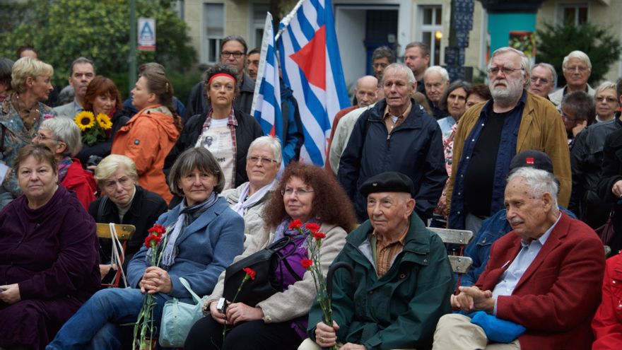 El alcalde de Berlín envió una nota diciendo que “estaba con el pensamiento” allí, pero que no podía asistir al acto. Entre el público, Hans Modrow, el último presidente del Consejo de Ministros de la RDA. También estuvo presente el periodista norteamericano Victor Grossmann, que en 2006 escribió un libro en alemán sobre la guerra civil española (Madrid, du wunderbare).