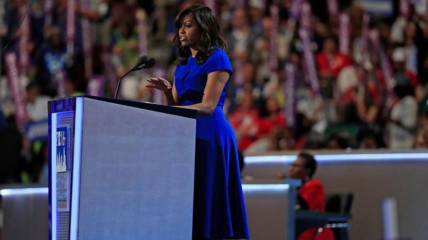Al declarar su apoyo a Clinton, Michelle Obama destacó, con la voz quebrada por la emoción, que gracias a ella sus dos hijas “dan por hecho” que una mujer puede ser la próxima presidenta de EEUU.