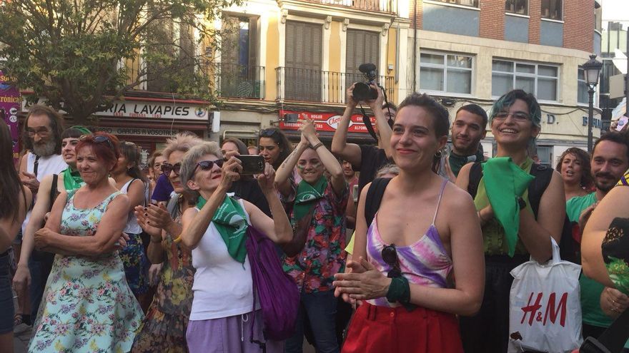 “Vecinas, ¿qué queréis vosotras?”, pregunta una de las integrantes del colectivo Vecinas de Lavapiés. “Yo quiero que haya aborto legal y libre en mi país”, responde un chica joven que se llama Eliana Murgia, natal de Buenos Aires. En el corazón de Madrid y para comenzar los festejos del céntrico barrio de la capital, decenas de mujeres y niñas han acudido con pañuelos verdes para gritar por Argentina y por el derecho a decidir.