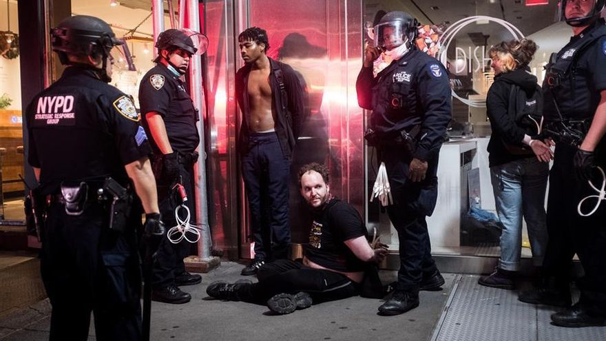 Las protestas antirracistas han vuelto una jornada más, la séptima consecutiva, a las calles de EEUU. En esta ocasión, en Nueva York la noche se ha saldado con unos 180 arrestos, principalmente de manifestantes que no quisieron marcharse a pesar del toque de queda. La cifra ha vuelto a bajar un día más, tras las 280 detenciones de ayer miércoles y las más de 700 del lunes.