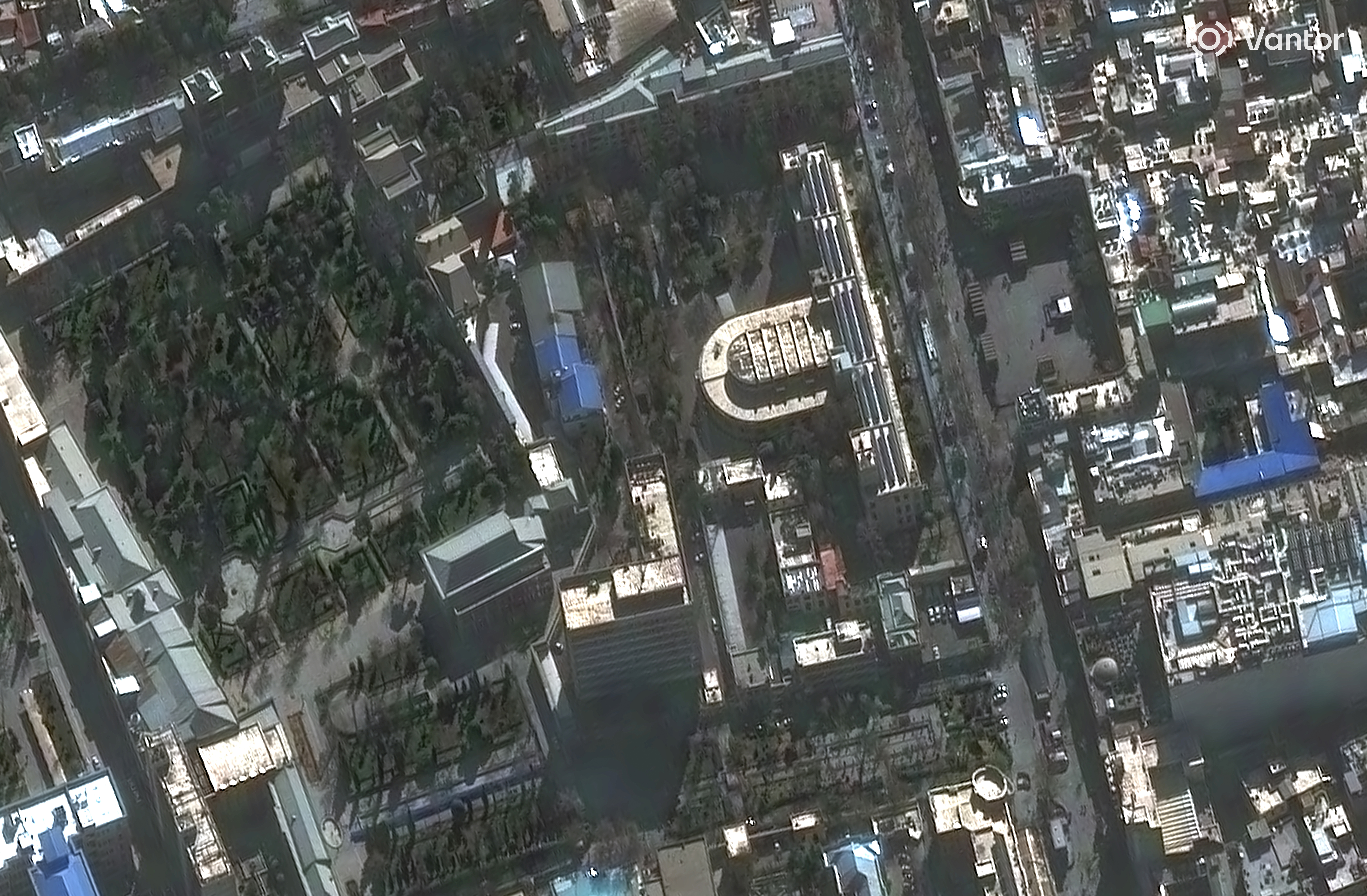 Vantor también ha difundido imágenes de las consecuencias de los ataques en instalaciones gubernamentales como el Ministerio de Inteligencia (se puede apreciar un edificio dañado abajo, a la derecha), y también otras que permiten ver indicios de destrucción en la sede de la Guardia Revolucionaria de la República Islámica, en el norte de la ciudad, donde varios edificios han quedado destruidos o dañados.