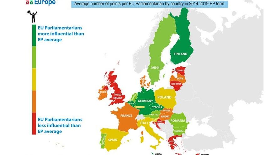 VoteWatch Europe ha elaborado un informe sobre la influencia de los diferentes eurodiputados en base a un algoritmo que se centra en tres asuntos principales: la actividad de cada representante en la redacción de informes y leyes, puestos de liderazgo en los órganos del Parlamento y la fortaleza de su red política. El estudio permite analizar la influencia de los eurodiputados por país y por partido, así como la “influencia media por diputado”.