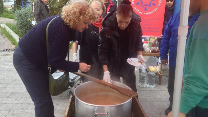 Esa catástrofe no sólo se ve en las cifras, también en las iniciativas de la sociedad civil para paliar las consecuencias. La organización Solidarty4All, organización apoyada por Syriza, dispone de una red de iniciativas para ayudar en materia de vivienda, sanidad y alimentación. Así, en uno de sus locales en el Pireo, a las afueras de Atenas, reparten con voluntarios comida y ropa a todo aquel que lo solicite.