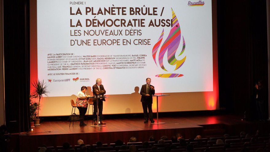 El planeta arde, la democracia también. Es el lema. Para hablar del “neoliberalismo del desarrollo sin fin”, en palabras de Jean-Luc Melenchon. De un modelo construido sobre “la explotación del planeta y las desigualdades humanas”, según el copresidente de los Verdes en el Parlamento Europeo, Philippe Lamberts. De la hipótesis de aspirar “al buen vivir, a ser felices respetando los derechos de la naturaleza”, teorizada por el socialismo americano de Rafael Correa, expresidente de Ecuador.