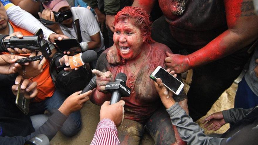 Una de las imágenes de este día de disturbios en la región fue la de la alcaldesa de la ciudad de Vinto, la oficialista Patricia Arce, teñida de pintura rojiza por una turba que la arrastró varios kilómetros por la calle tras incendiar la alcaldía. Una muchedumbre incendió el edificio municipal de Vinto, una ciudad de algo más de 60.000 habitantes, antes de que sacara a la fuerza a la alcaldesa, del gubernamental Movimiento al Socialismo (MAS), para vejarla cortándole el pelo.