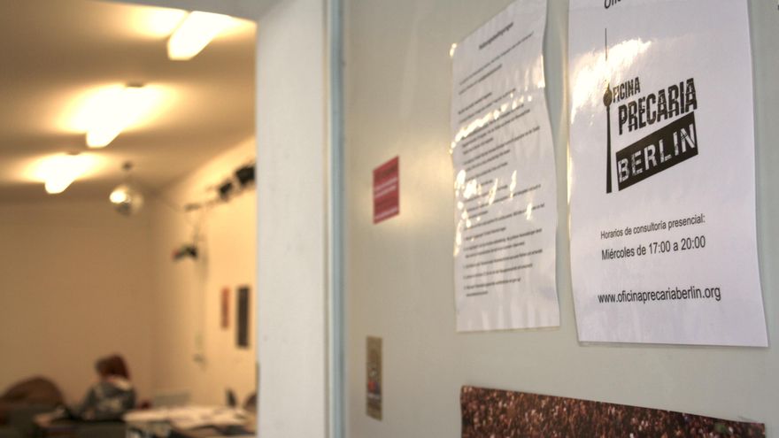 Se entra por un estrecho callejón del número 19 de la calle Magdalenestraße en el barrio berlinés de Lichtenberg. Un modesto cartelito en el que reza 'Oficina Precaria' invita a los interesados a entrar todos los miércoles de cinco a ocho. Dentro esperan los voluntarios que atienden alrededor de una veintena de consultas a la semana. “La mayoría de las preguntas las respondemos por email, pero para casos mas complicados vienen aquí. Hay días que la gente tiene que hacer cola”, explica Maribel Domínguez, de Valencia, que se vino en 2008 a Berlín y es nutricionista.
