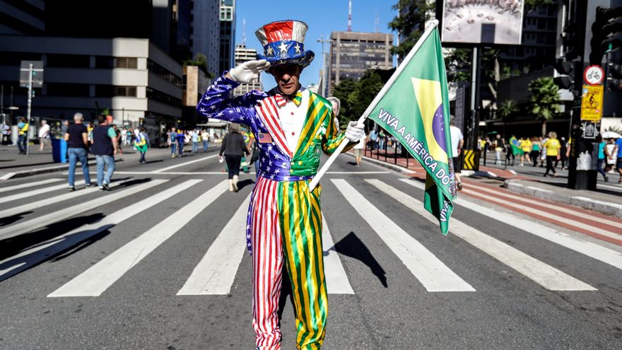 Simpatizantes del presidente brasileño, Jair Bolsonaro, se manifiestaron el domingo en la avenida Paulista, en Sao Paulo.
