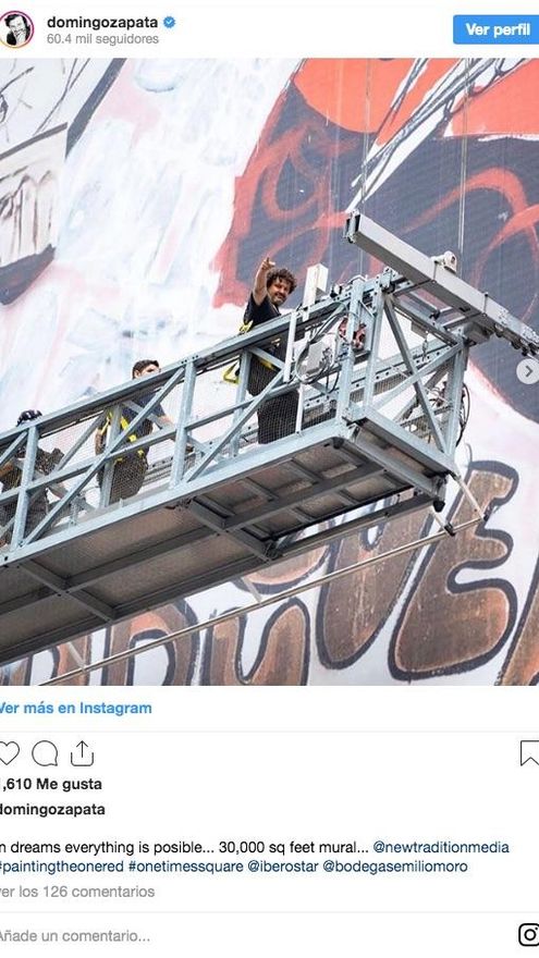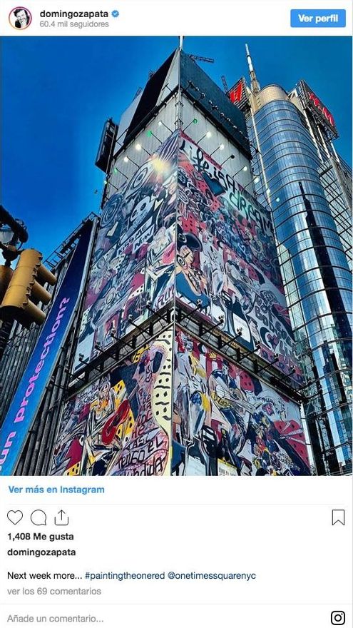 Ahora, este eje del turismo masivo en pleno centro de Manhattan está cambiando y comienza por exponer algo más de arte. El artista español Domingo Zapata acaba de terminar el mural más grande que la ciudad de Nueva York haya visto, a casi 100 metros de altura, en el edificio situado en el número uno de la plaza. Le llevó tres semanas pintarlo y allí permanecerá los próximos tres meses.