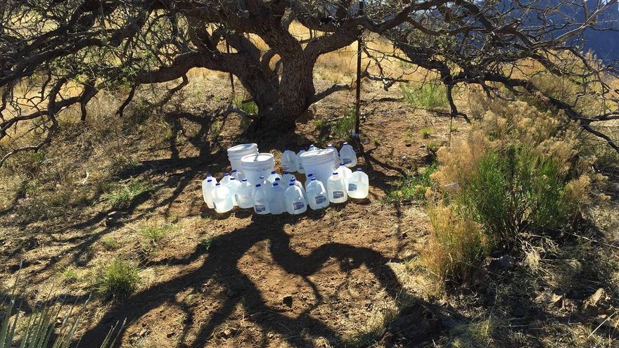 El año pasado, No More Deaths dejó 73.603 litros de agua en el desierto, con ayuda de más de 200 voluntarios. Yo fui parte activa durante mi estancia y llegué a cargar más de veinte litros por viaje a través de arenales y pendientes escarpadas para acceder a caminos de inmigrantes a los que sólo se puede llegar a pie. A veces, descubríamos que alguien había tirado el agua que habíamos dejado la vez anterior y arrojado los vacíos y rotos recipientes a los arbustos.
