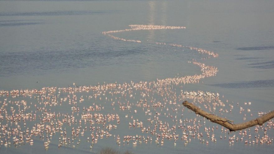 Cuando la lancha de 24 plazas entra en la ensenada de Thane Creek (Bombay), la emoción de los turistas y trabajadores de la ciudad a bordo de la embarcación es palpable. Finalmente, tenemos ante nosotros el paisaje rosa que vinimos a ver y estallan los “oohs” y los “aahs”, solo interrumpidos por el furioso chasquido de las cámaras de fotos. Vemos a cientos de flamencos que se balancean en las aguas turbias y verdosas. Entonces, prácticamente al unísono, las aves salen del agua y echan a volar. “Siempre van de un sitio a otro en grupo”, explica Prathamesh Desai, que desde hace siete años organiza excursiones para observar las aves: “Son una especie extremadamente gregaria”.