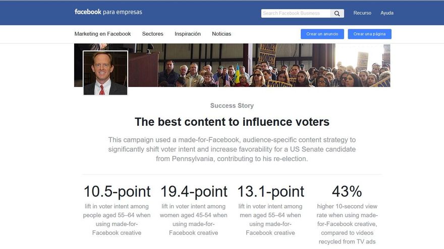 Sin embargo, el equipo de ventas de Facebook ha publicitado la capacidad de la compañía para “cambiar significativamente la intención de voto” mediante anuncios.