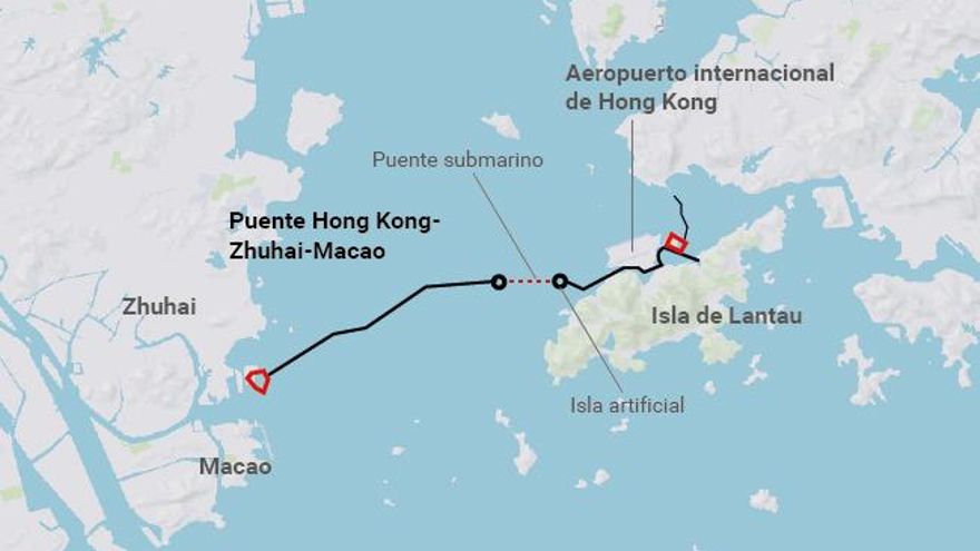 El proyecto, que lleva en construcción nueve años, se ha visto afectado por muchos retrasos, demandas y sobrecostes en su presupuesto. Se espera que el puente, que originalmente debía haberse inaugurado en 2016, empiece a funcionar en algún momento de este año, según las autoridades de Hong Kong.