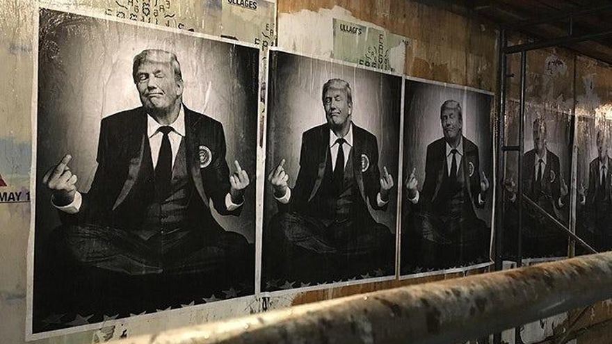 Sin embargo, en la era Trump, la derecha tiene su propio artista guerrillero: Sabo, un exmarine de EEUU que trabaja desde un apartamento-estudio de Los Ángeles bajo un cartel que reza “Que le jodan al Tíbet” y otro que señala: “Que le jodan a la paz”.