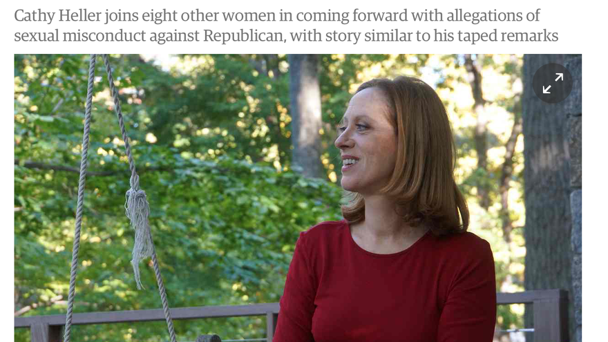 Heller contó su historia el 15 de octubre, justo después de que se hiciera público un vídeo en el que Trump alardea de besar y toquetear a las mujeres sin su consentimiento ni mayores consecuencias. La historia de Heller rápidamente provocó la condena por parte del equipo de campaña Trump, que negaron en su nombre todas las acusaciones.