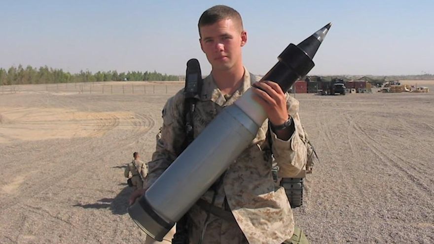 A primera vista, la escena puede parecer la de dos amigos recordando buenos tiempos. Tyler Flanigan, relajado en el porche, bebiendo una cerveza, con los tatuajes asomando por debajo de la manga, se ríe junto a su amigo Nigel McCourry, otro exmarine estadounidense.