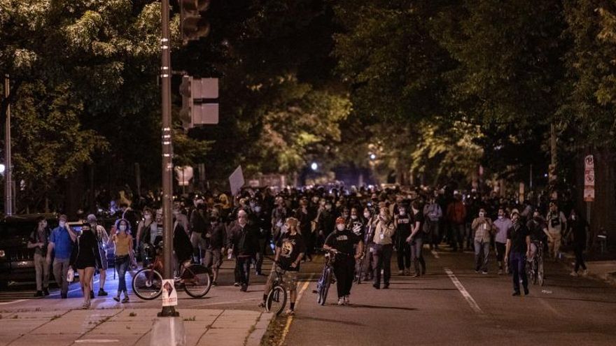 En la capital, Washington DC, algunos manifestantes siguen en partes del centro de la ciudad, pese a que las fuerzas de seguridad intentan dispersarlos. Algunos grupos está lanzando piedras y destruyendo los escaparates de las tiendas.