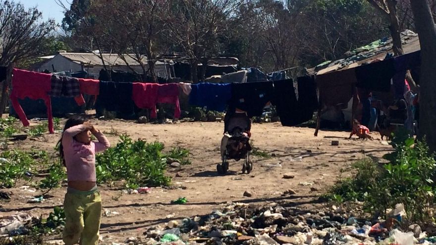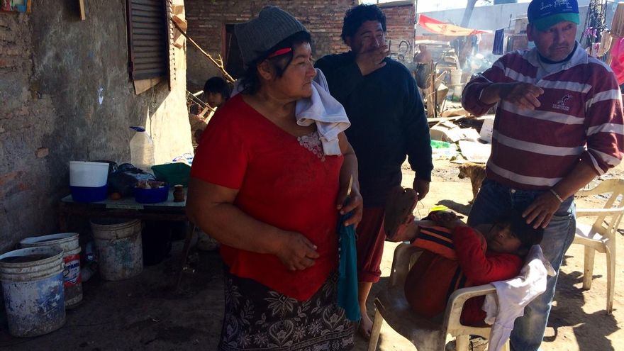 Martina sonríe desde una destartalada silla de bebé. Tiene seis meses, está sucia de pies a cabeza y es la menor de las nueve personas que malviven en un rancho de paredes de chapa y suelo de barro. A la puerta de la chabola, su abuela Margarita critica a los políticos que se acercan al asentamiento en el que vive sólo antes de las elecciones. “Vienen acá y prometen de todo. Una mesa, un colchón, ¡hasta un baño! Y después, nada. Se creen que somos tontos. Yo voto a quien me da algo”, se queja rodeada de sus niñas.