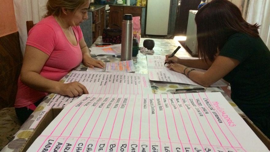 “A partir de aquella zona para allá sí que han repartido bolsas de comida”, dice Carmen señalando un punto indefinido al final de la calle de tierra. Pero a su casa no han llegado. Quizá, arriesga, porque la relacionan con la gente de Barrios en pie, un movimiento social y político que trabaja en las áreas pobres y cuyo candidato pertenece a la oposición. Sus hijas de 9 y 7 años van a diario al merendero de la asociación, como otros 80 niños del asentamiento, a por un vaso de leche y unas galletas. Además Susana, la coordinadora, le consigue las medicinas que ella no puede comprar.