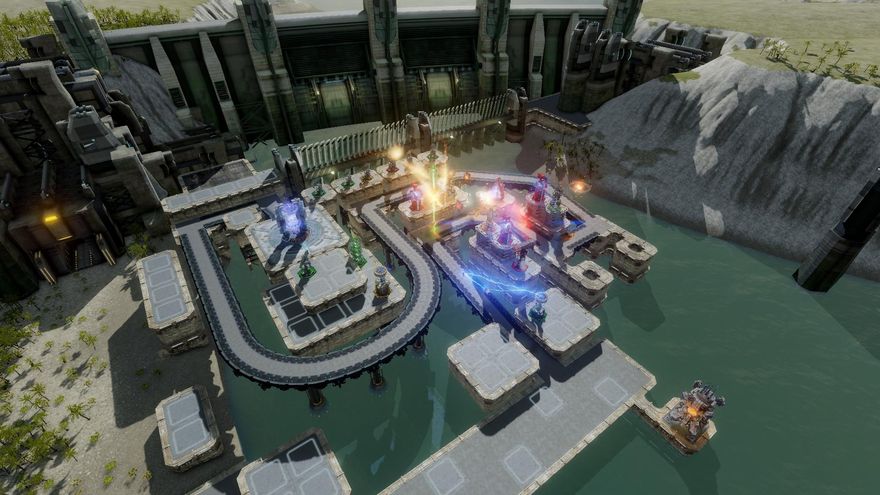 Por otra parte contaremos con las estructuras de potenciación, que aunque de primeras nos sirven para bloquear el paso a nuestros enemigos, también podremos colocar nuestras torres encima utilizándolas a modo de soporte, lo cual a su vez, nos ofrece algunas posibilidades de potenciación adicionales como un bonus de daño, la posibilidad de detectar enemigos invisibles, o la anulación de los escudos de enemigos cercanos.