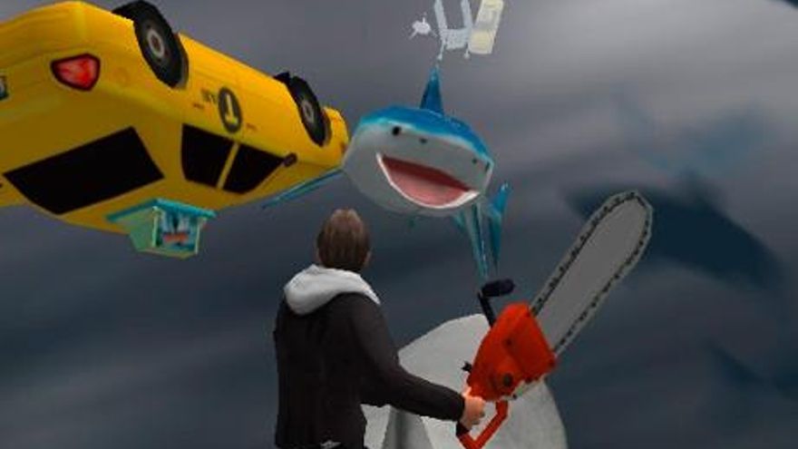 Sharknado: The Video Game nos pondrá en la piel de un campeón de surf llamado Finley Shepard (ahorraros el buscar la relación con Mass Effect, que no la hay), un tipo que se ve envuelto en la catástrofe natural más esperpéntica: tornados ‘lanza tiburones’ arrasan la isla de Manhattan y él tendrá que salir de ahí por patas mientras revienta tornados con una motosierra.