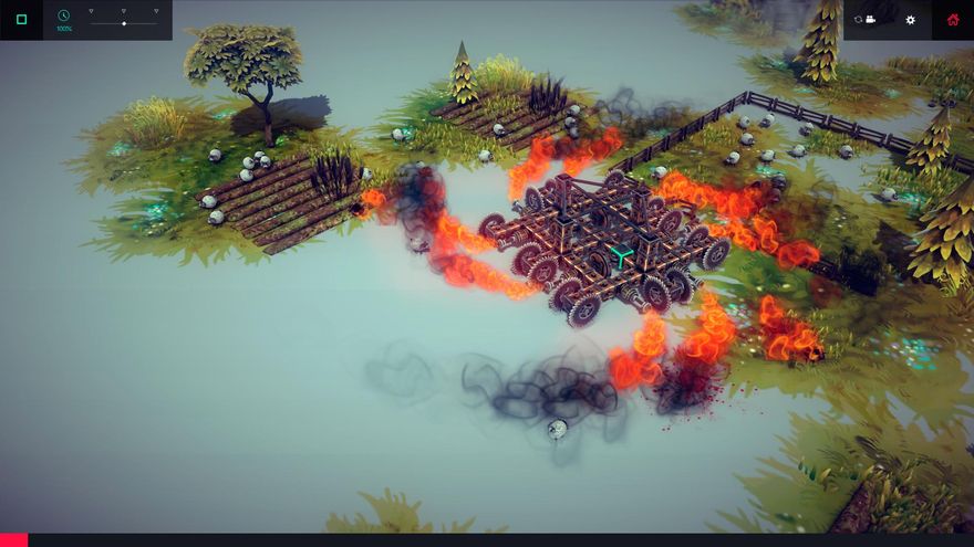 Por ejemplo, puede que simplemente tengamos que arrasar una granja indefensa. Pues bien, nosotros mismos podemos decidir cómo lo hacemos, con opciones que van desde construir un carromato con lanzallamas para prenderle fuego, un tanque acorazado con el que embestirla hasta convertirla en escombros o bien un rudimentario helicóptero que nos permita soltar una bomba desde las alturas. Evidentemente, cuanto más difícil es el objetivo más necesario será que optemos por construir máquinas más complejas, grandes o letales, pero siempre estará ahí la posibilidad de superar cada reto con pequeñas creaciones la mar de imaginativas, a veces con resultados sorprendentes.